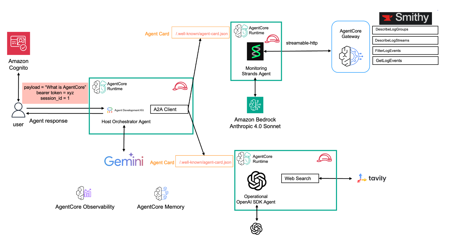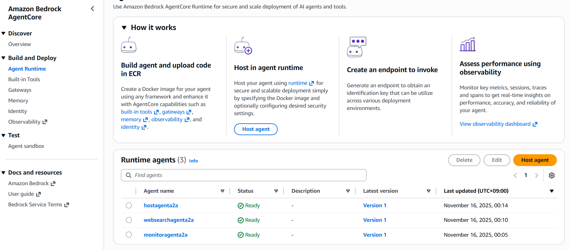 Amazon Bedrock AgentCore Runtime では、.well-known/agent-card.json パスでこのファイルを自動ホスティングする仕組みを提供しています。