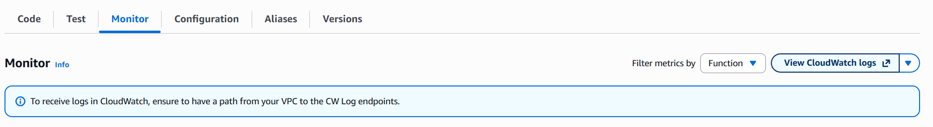 コンソールやドキュメントでも表示されている通り、Amazon CloudWatch Logs に実行ログを出力するためにはVPC EndPointが必要となります。