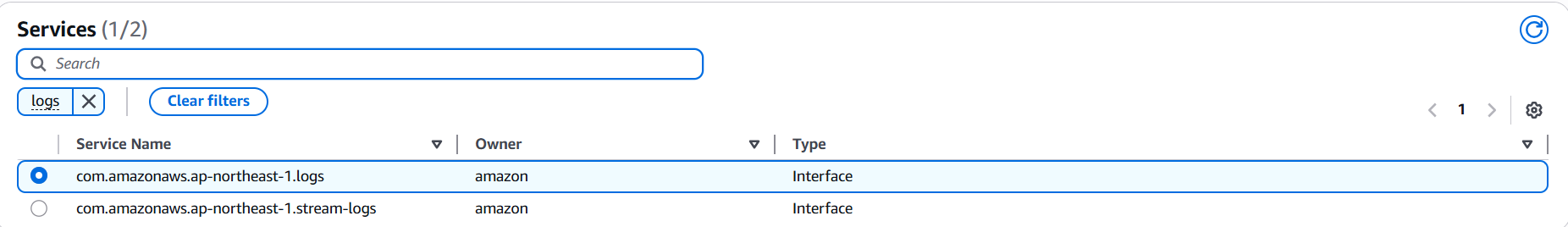 ではVPCのマネージメントコンソールからCloudWatch Logs 用VPCエンドポイントを作成します。