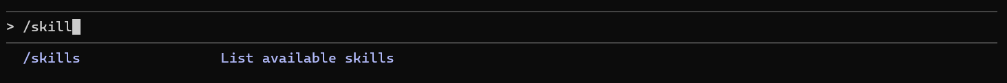 では Claude Code からテストを行います。 /skill と入力して実行してみます。