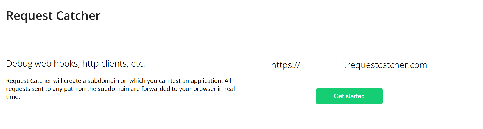 https://requestcatcher.com/ にアクセスを行い`kameda`でもなんでも適当な文字列を入れて専用エンドポイントを作成します。