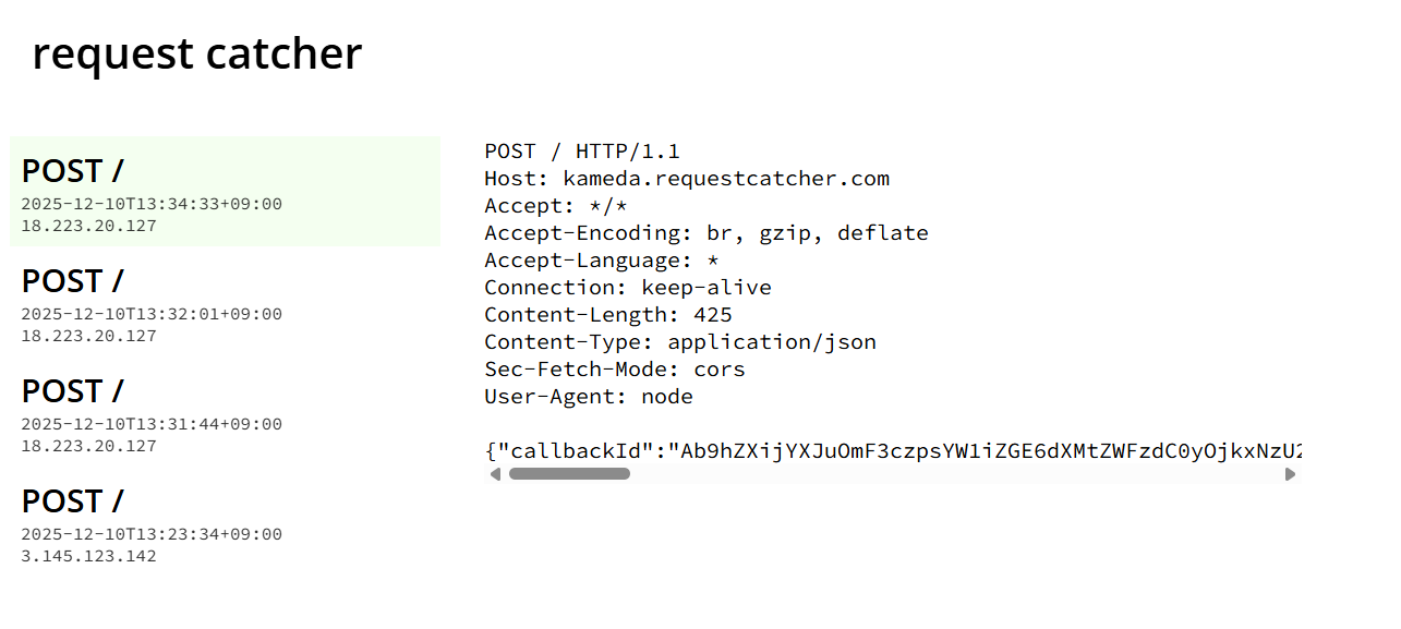 // 2. 外部システム(RequestCatcher)にコールバックIDを送信