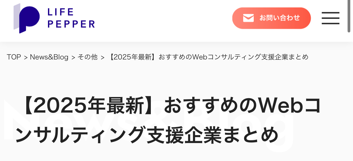 「LIFE PEPPER おすすめのWebコンサルティング支援企業」に弊社が紹介されました。
