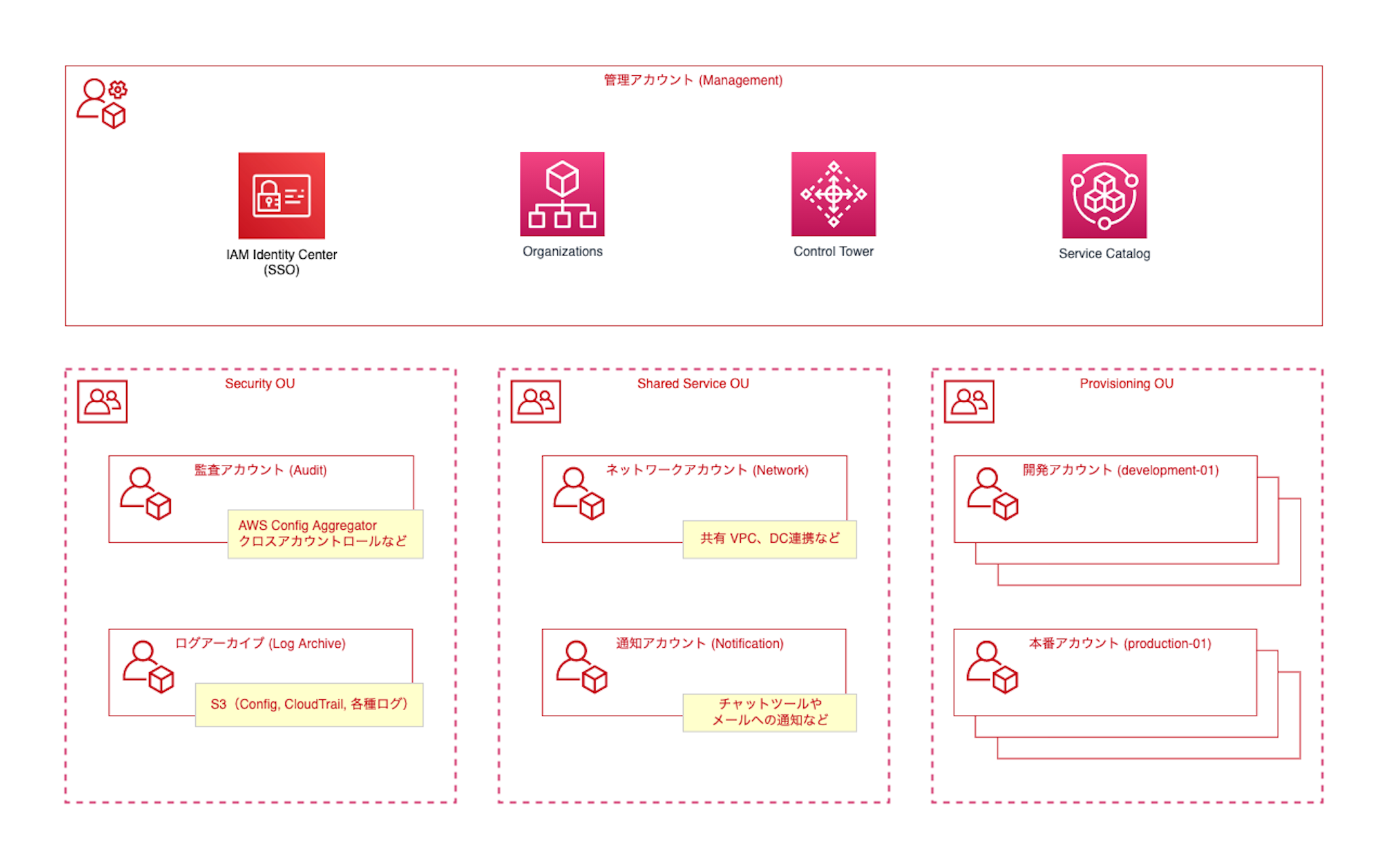 Control Towerによるマルチアカウント統制により、ワークロード・ユーザ・ログ収集といった権限の境界を明確化。