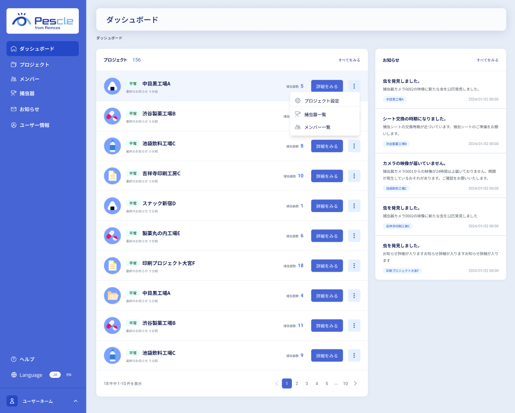 食品工場では、衛生状態を定量的に把握する指標のひとつとして、捕虫機に捕獲された虫の数を定期的に計測・記録する取り組みが行われています。これまで現場のオペレータが一定間隔で捕虫機を確認し、手作業で捕獲数をカウント・記録する運用が一般的でしたが、作業負荷や記録のばらつき、確認の遅れといった課題を抱えていました。